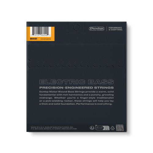 Dunlop Nickel Wound Bass Strings lay down the groove with a warm, solid fundamental while cutting through the mix with a punchy midrange growl and rich harmonics. Each set is tonally balanced from string to string to give you a consistently robust low end no matter where you play on the fingerboard. Whether you're a traditionalist, a slapper, or a pick-wielding rocker, Dunlop Nickel Wound Bass Strings give you what you need to build a solid foundation and drive the music forward.