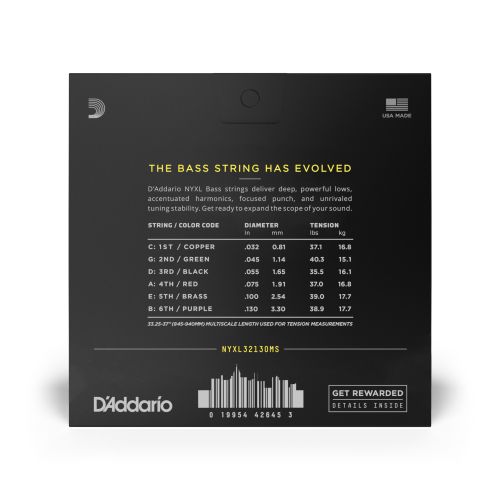 D'Addario NYXL32130MS , 32-130 Regular Light 6-String, Multiscale, NYXL