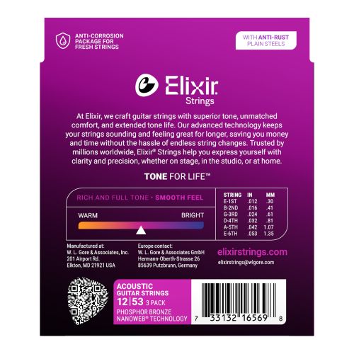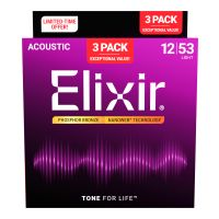 Elixir 16052 3 pack Elixir® Acoustic Phosphor Bronze Strings met NANOWEB Coating zorgen voor karakteristieke sprankelende, warme klank met een langere klankbeleving die spelers van Elixir Strings mogen verwachten.