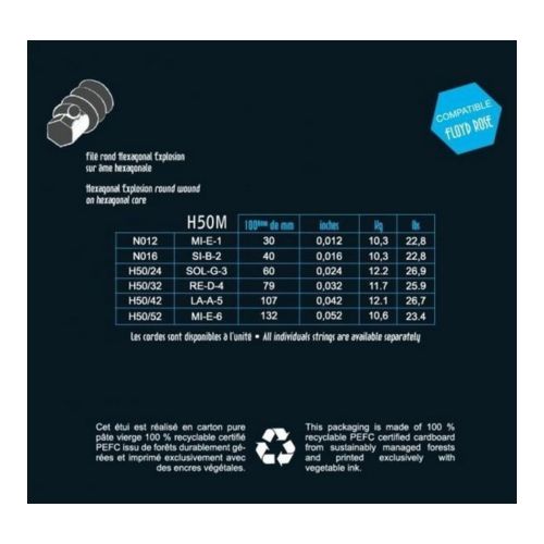 Hexagonal Explosion strings are made from nickel-plated, steel wire wrapped around a hex-shaped core. Perfectly compatible with whammy bars, these strings produce optimum performance, great tone, great durability and the specific feel of a hex core.