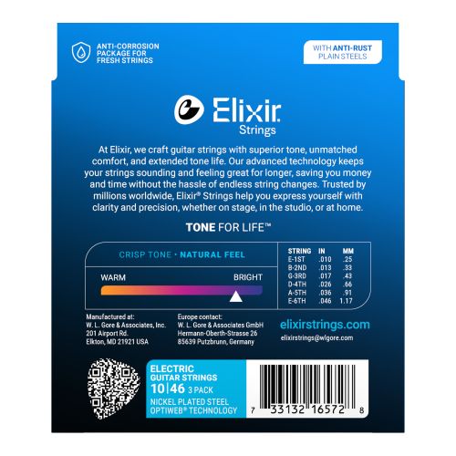 Elixir® Electric Nickel Plated Steel Strings met OPTIWEB Coating geven je de prestaties van een normale snaar - met een heldere tone, een natuurlijk gevoel en een goed bespeelbare grip die je kent zonder in te boeten aan de kenmerkende, duurzame klankbeleving van Elixir Strings.
