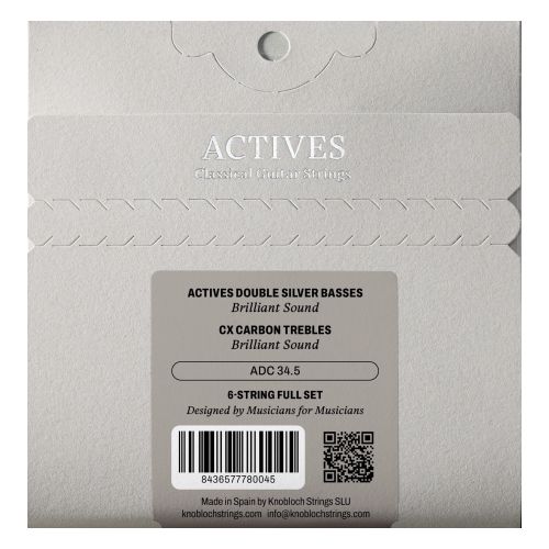 The Knobloch Actives product line enhances the musical expression of the guitarist by providing more security, comfort and ease in realizing the interpretation. Knobloch Actives strings offer: A wide range of colours and enhanced resonance through the use of high-quality materials. An extremely responsive touch with good vibrato. A perfect balance that makes the tension of the strings unnoticeable. A greater resilience and durability thanks to the selection and quality control of superior materials. This set is a benchmark and a classic example of the new generation of strings with their brilliant, present and warm sound. The perfect balance between the vibrant and bold sound of the basses and the enhanced projection of the C.X. trebles gives this set more sonority and projection.
